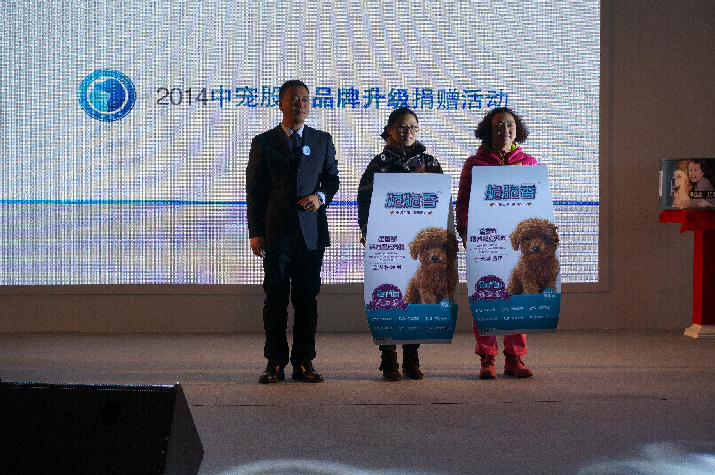 會議現(xiàn)場,中寵股份副總裁梁洪文先生代表公司向北京好貓好狗伴侶動物基地和幸運(yùn)土貓兩個寵物救助組織進(jìn)行愛心寵物糧食捐贈。