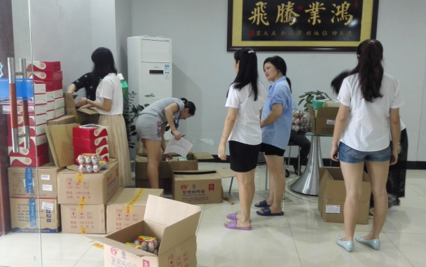 負責領(lǐng)取的前臺小周清點、簽名忙的不亦樂乎,這不,財務(wù)部的美女們熱心幫忙分發(fā)啦!