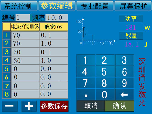 5、設(shè)備具有波形調(diào)用功能,可以根據(jù)上位機的指令,在不同工位使用不一樣的激光能量,適合加工復雜工況。