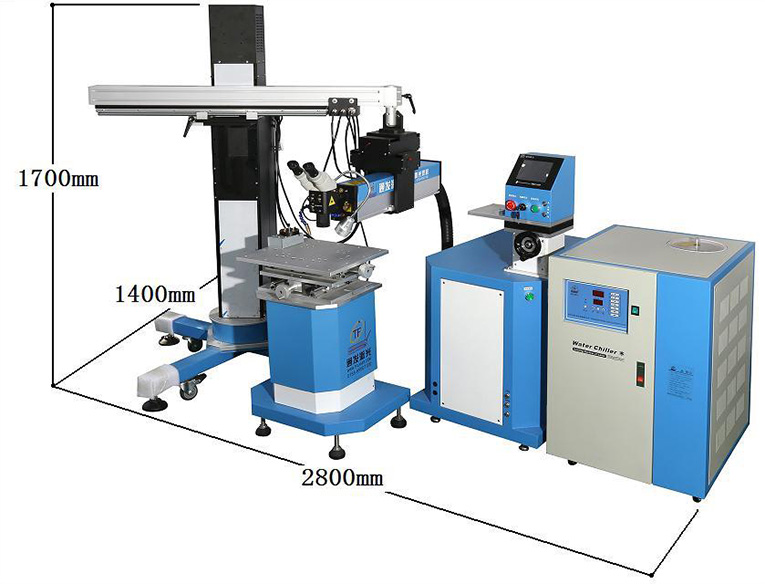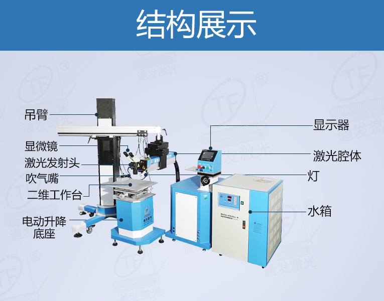 通發(fā)激光特大型模具TFL-200Ⅲ-DB吊臂激光焊機,幫您解決大型汽車模具修復難題,不要模具移動,吊臂激光頭操縱桿控制運動移動實現輕松激光修復20噸的模具,修復特大型模具利器。