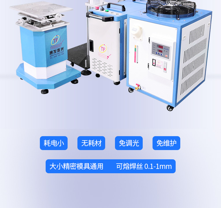 1、采用光纖激光器,反射率高,能量強(qiáng),免維護(hù),免調(diào)光,功耗少,相比傳統(tǒng) 模具焊來說,體積小,安全,穩(wěn)定性好超長使用壽命。