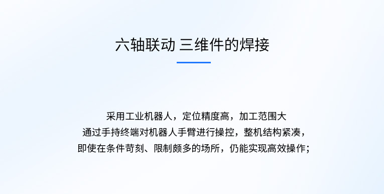 通發(fā)激光機(jī)械臂機(jī)器人激光焊接機(jī),采用機(jī)械手六軸聯(lián)動(dòng),對(duì)三維件五金件進(jìn)行3D精密焊接,非接觸式焊縫跟蹤系統(tǒng),多工位協(xié)調(diào)工作,可實(shí)生產(chǎn)智能化,自動(dòng)化,省時(shí)省力更省工,全方位降低生產(chǎn)成本。