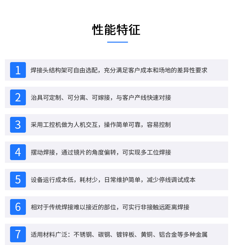 2、強(qiáng)大的PC控制,易于編程、調(diào)試和維護(hù)??赏瓿勺詣?dòng)或半自動(dòng)的點(diǎn)焊、對接焊、疊焊、密封焊,針對復(fù)雜的平面直線、圓弧及任意軌跡的焊接。