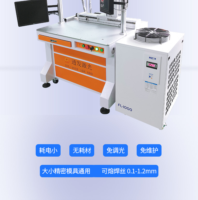 1、采用光纖激光器,反射率高,能量強,免維護(hù),免調(diào)光,功耗少,相比傳統(tǒng) 模具焊來說,體積小,安全,穩(wěn)定性好超長使用壽命。